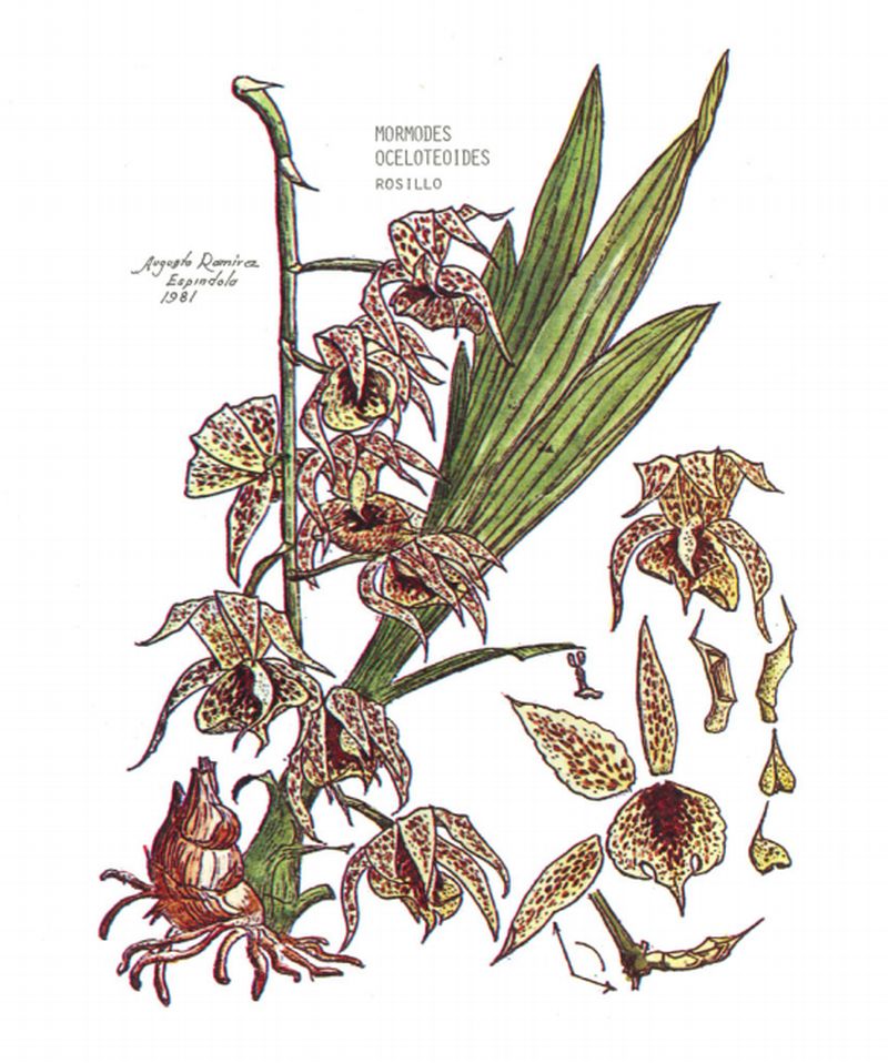 Mormodes oceloteoides S.Rosillo 1983 SECTION Coryodes TYPE Drawing by © Rosillo The AMO Herbaria Website