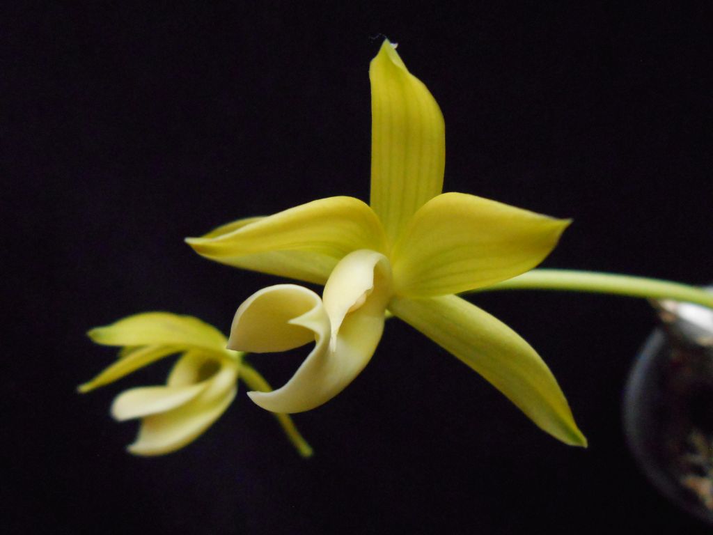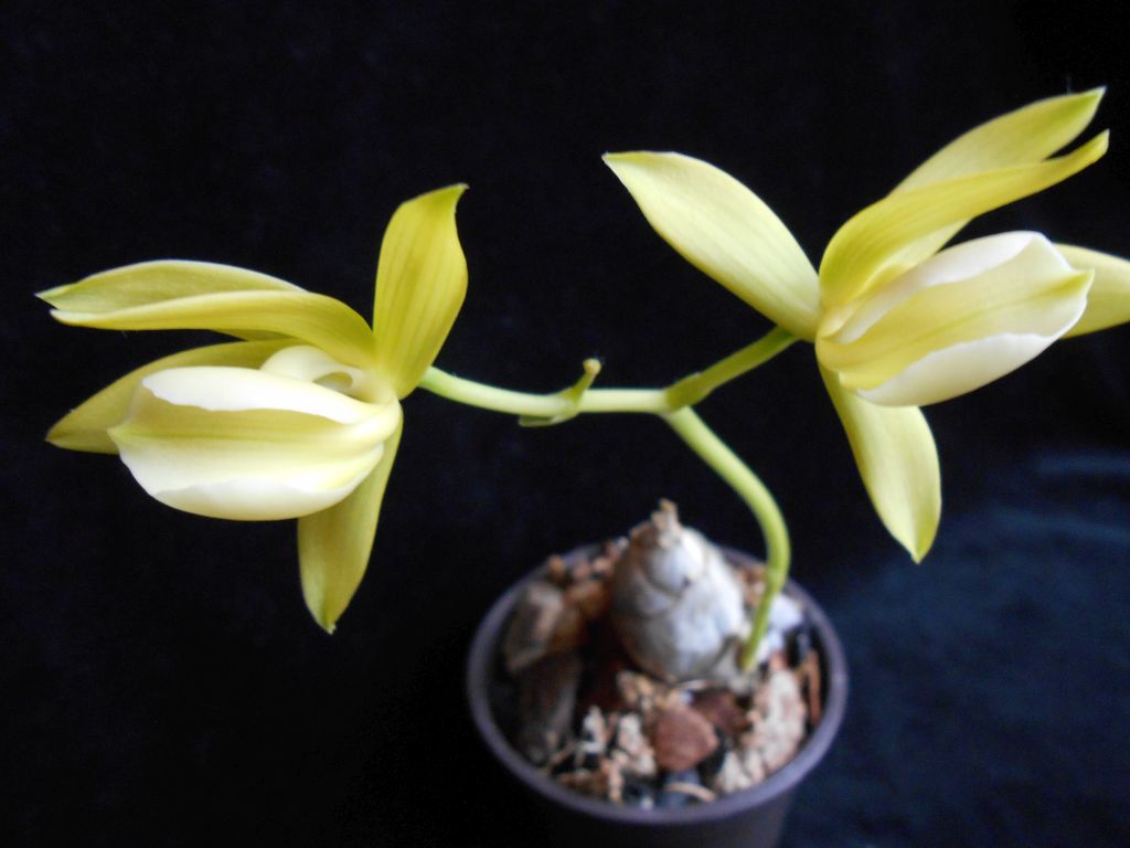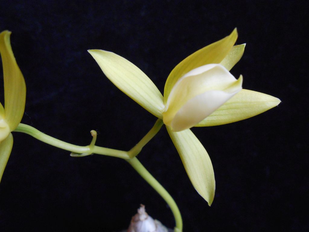 Found in Costa Rica on the Pacific slope at elevations of 600 to 800 meters as a small sized, warm growing epiphyte with squat, ovoid-conic pseudobulbs enveloped almost completely by leaf bearing sheaths carrying 9 to 11, ellipitc, plicate leaves that blooms in the winter on an ascending, arising from the lower third of a mature leafless pseudobulb, to 8.4" [21 cm] long overall, peduncle 7 noded, rachis to 6.2" [15.5 cm] long, straight, 2 to 5 flowered inflorescence carrying non resupinate, apparently non-fragrant flowers.