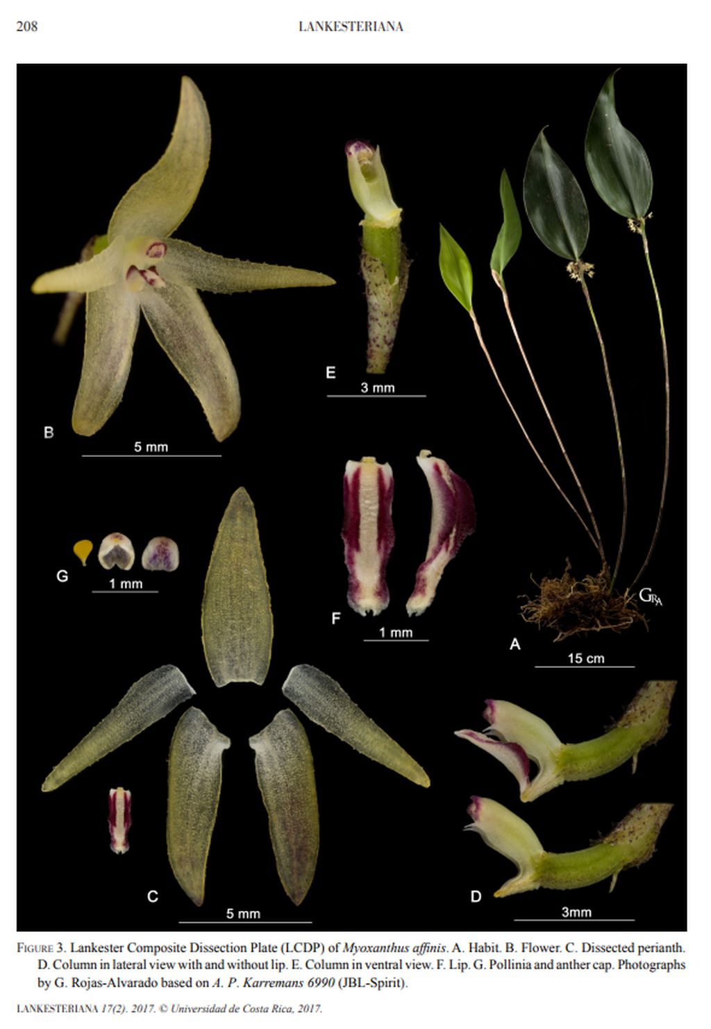 References W3 Tropicos, Kew Monocot list , IPNI ; Bonplandia Rchb.f 1855 as Pleurothallis rigidifolia; Icones Planetarum Tropicarum plate 211 Dodson 1980 as Pleurothallis affine drawing hmm tepals not long enough; Native Colombian Orchdis Vol 3 COS 1991 photo fide; Icones Pleurothallidinarum Vol IX Systematics of Myoxanthus Luer 1992 drawing fide; Native Ecuadorian Orchids Vol 3 Dodson 2002 photos ok; Orchid Species of Peru Zelenko Bermudez 2009 photo fide; Las Orquideas del Peru Izerskyy & Bezverhov 2011 photo fide; LANKESTERIANA 17(2): G Rojas-Alvarado & Karremans 2017 photo fide; Pleurothallids Neotropical Jewels Vol 1 Karremans & Viera 2020 photo fide; Vanishing Beauty, Native Costa Rican Orchids Vol 2 Lacaena to Pteroglossa Pupulin 2020 photo fide