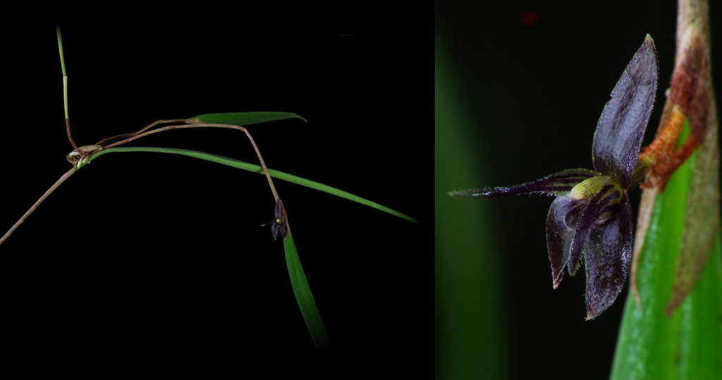 Found in Costa Rica, Panama, Venezuela, as well as Ecuador at elevations of 300 to 1650 meters as a miniature sized, hot to cool growing epiphyte with small plants separated by an 8" long stem connecting each plantlet that has a 1" long, slender, erect, flexible ramicaul carrying a single apical, narrowly elliptical leaf narrowly cuneate below into a subpetiolate base leaf that blooms at most any time of the year to a terminal, short, single flowered inflorescence that holds the flower close to the leaf base.