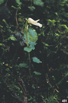 Found in central Taiwan in forests in damp locales at elevations of 1000 to 3000 meters as a miniature sized, cool to cold growing terrestrial with a white, tinged with red stem carrying several, abaxially grayish green, adaxially green, ovate to orbicular-ovate, 3 main veined, slightly undulate margins, acute apically, obtuse based into the petiolate base leaves that blooms in the later spring through summer on an erect, slender, pubescent, to 1.2" [3 cm] long, 1 to 3 flowered inflorescence with lanceolate, shorter than the ovary, glabrous, slighly ciliate margins floral bracts.