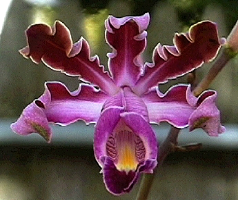 Found in southern Mexico and northern Guatemala on the Caribbean side in lower montane forests and scrub as a large to giant sized, hot growing epiphyte with thickly cylindrical, strongly ribbed, short pseudobulbs carrying 3 apical, rigid leaves and blooms in the spring and early summer on a terminal, 7' [2.25 meters] long, many [to 80] flowered, paniculate inflorescence with many dark purple flowers.