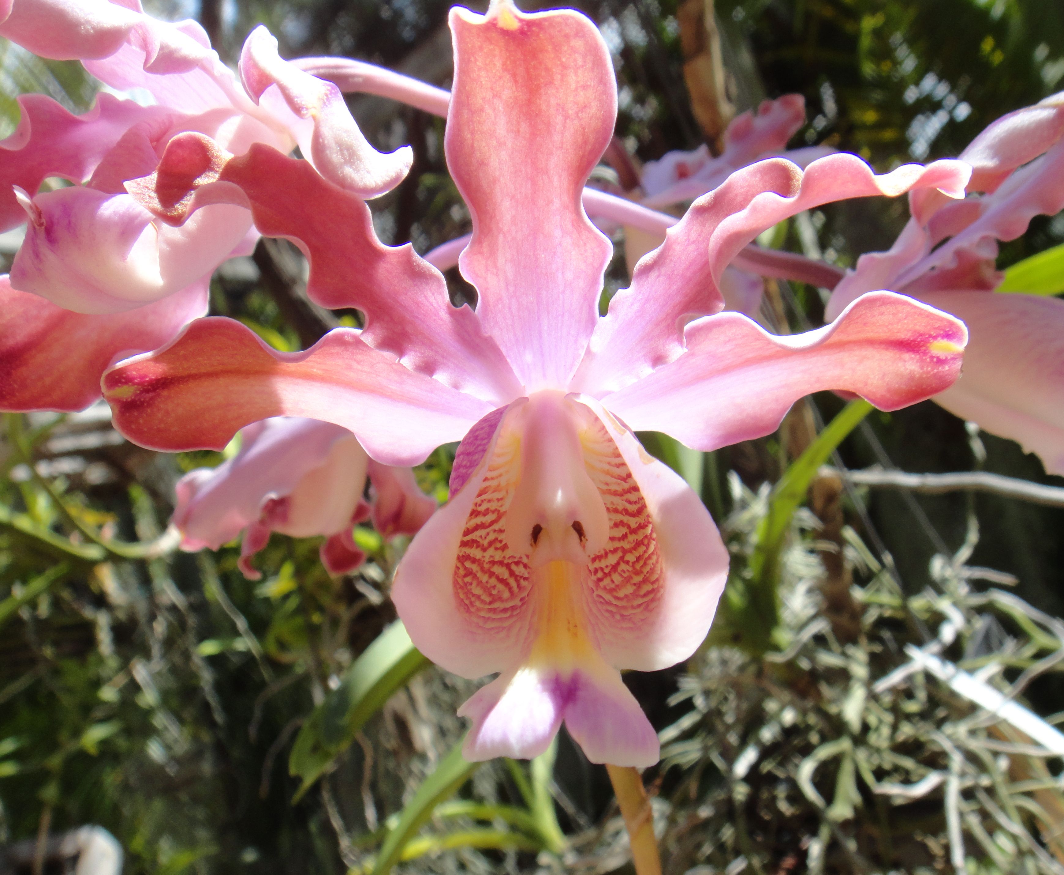 A giant sized, warm to hot growing epiphyte and sometimes lithophyte with several leaves that is found from Mexico, Guatemala, Belize, Honduras, Costa Rica, Venezuela and Colombia in seasonally dry deciduous forests on trunks and larger branches often in full sun at elevations of 300 to 600 meters, it has huge, 18" [45 cm], sulcate, conic to cylindric pseudobulbs that are hollow and have a entrance at the base so that in the wild there are always ants living in them. There are 2 to 5 apical, elliptic-ovate leaves that blooms in the spring to 15' [450 cm] long, erect, paniculate spikes with the successively opening, fragrant flowers in a cluster at the apex so thought must be put into space so the spikes don't get broken. .