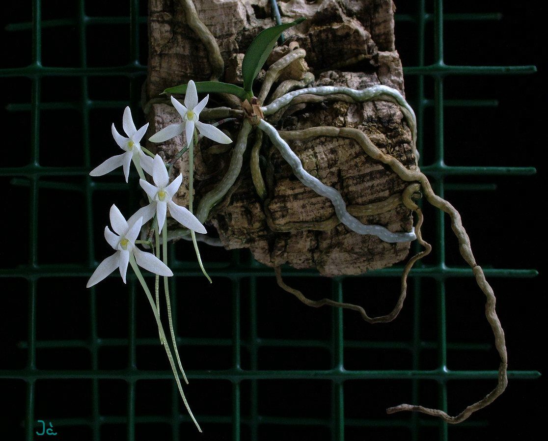 Found in Mozambique, Swaziland, Cape Province, Natal and Transvaal South Africa in woodland and riverine forest bush and coastal and montane forests at elevations of 500 to 1700 meters as a miniature sized, warm to cold growing epiphyte with a short stem carrying 2 to 4, deciduous, elliptic to oblanceolate, unequally bilobed apically, venation distinctly darker leaves that blooms in the winter, with or without leaves, on a pendant, usually several, densely 4 to 12 flowered, thick, 1 to 4" [2.5 to 10 cm] long, racemose inflorescence carrying nocturnally, sweetly scented flowers.