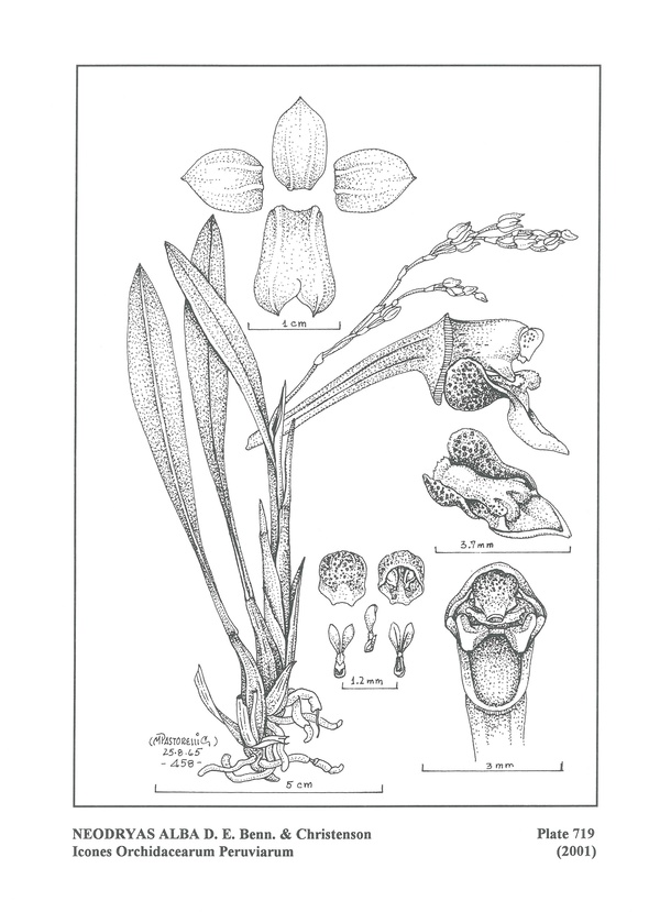 References W3 Tropicos, Kew Monocot list , IPNI ; *Icones Orchidacearum Peruviarum Plate 719 Bennett & Christenson 2001 as Neodryas alba drawing fide; Rudolf Schlechter Die Orchideen Band 1C lieferung 44-45 pg 2763 - 2898 Brieger 2001