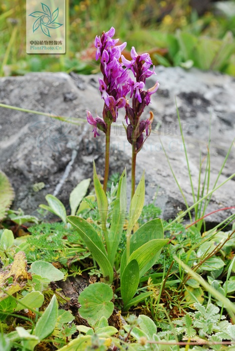 Found in western Sichuan province of China in alpine meadows at elevations of 4000 to 4100 meters as a mini-miniature sized, cold growing terrestrial with ellipsoid tubers giving rise to an erect stem with 1 to 2, tubular, basal sheaths and carrying 2, basal, subopposite, narrowly oblong to oblong-lanceolate, obtuse leaves that blooms in the later summer on an erect, 1.2 to 1.4" [3 to 3.5 cm] long, densely 6 to 8 flowered inflorescence with herbaceous, narrowly lanceolate, acuminate, slightly longer than the ovary floral bracts.