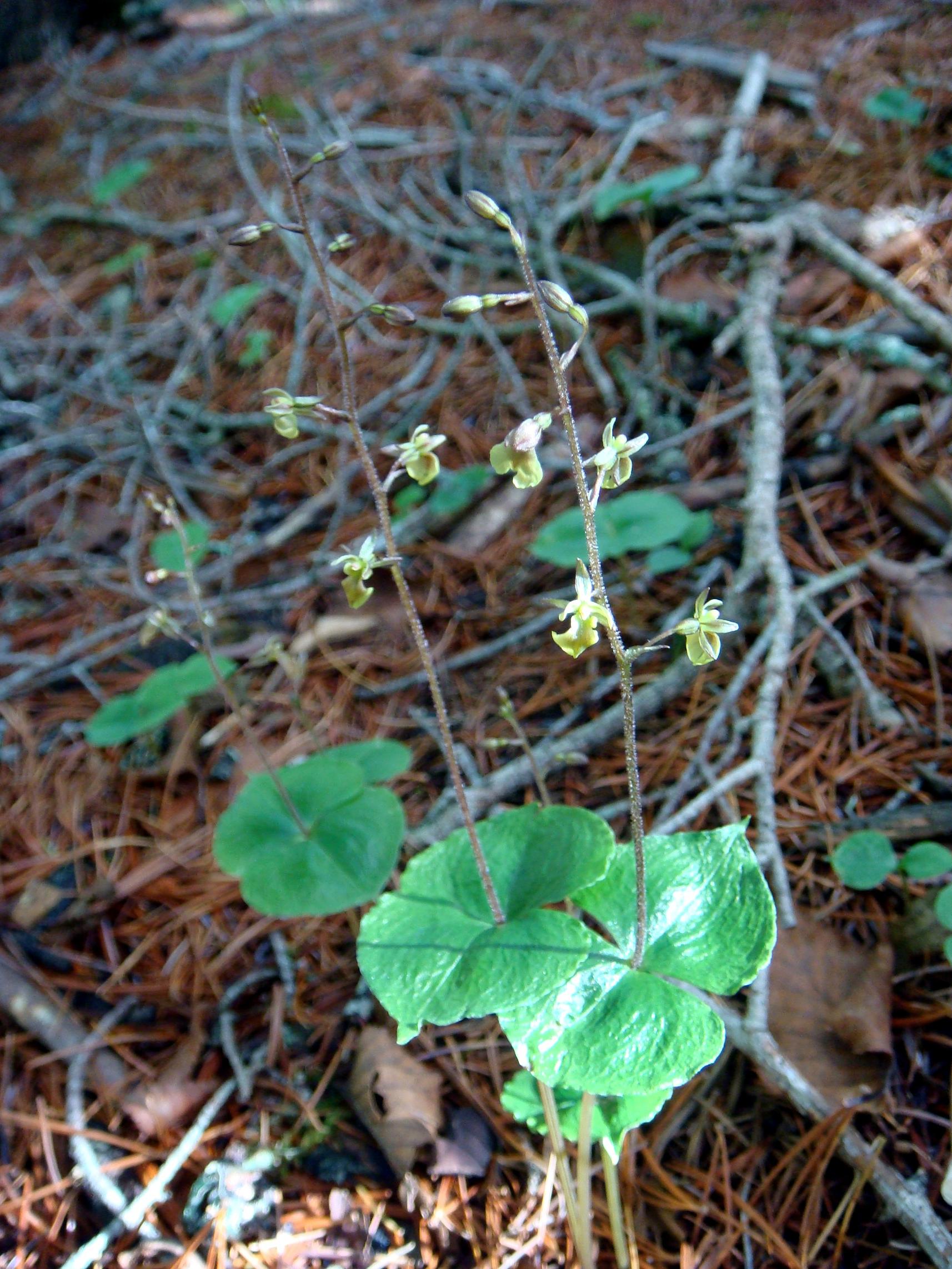 Found in eastern Siberia, Japan and Korea in subalpine conifer forest as a miniature to small sized, cold growing terrestrial with an erect stem carrying 2, near the ground but not adpressed, opposite, cordate, acute, sessile leaves that blooms in the late spring and summer on a terminal, erect, 3 to 8" [7.5 to 20 cm] long, laxly few to several flowered inflorescence
