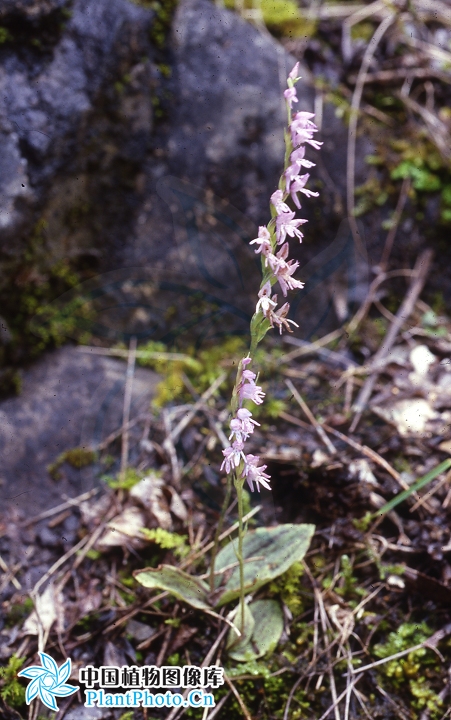 Found in western Sichuan province of China in alpine Pinus forests and shrubby slopes at elevations of 2400 to 3300 meters as a mini-miniature sized, cold growing terrestrial with subglobose tubers giving rise to an erect stem with 1 to 2, tubular, basal sheaths and carrying a single, basal, ovate to broadly ovate, acute, rounded to broadly cuneate base leaves that blooms in the later summer and early fall on an erect, .8 to 1.6" [2 to 4 cm] long, subdensely 4 to 8 flowered inflorescence with a small sterile bract and lanceolate, basal one longer than the ovary, acuminate floral bracts.