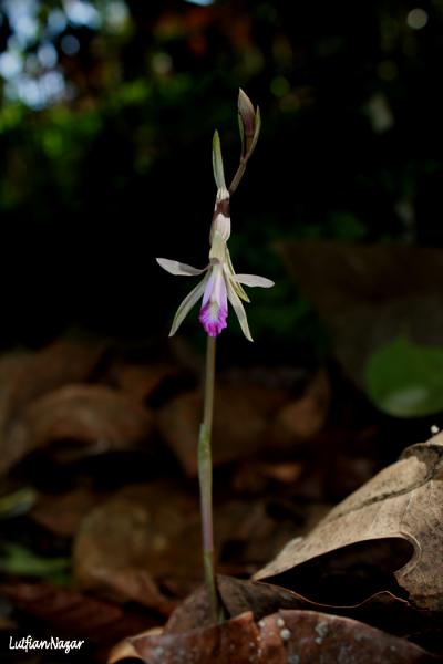 Found in Java and New Guinea in dry and wet teak forests at lower elevations as a small sized, hot to warm growing terrestrial with an ovate, acute, size variable, somewhat plicate, glabrous, pale green leaf that blooms on an erect, 2 to 3 flowered inflorescence.