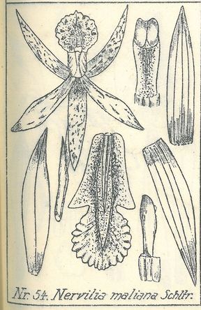Nervilia maliana Schltr. 1911 SECTION Linervia Type Drawing by © Schlechter and The Swiss Orchid Foundation at the Jany Renz Herbaria Website