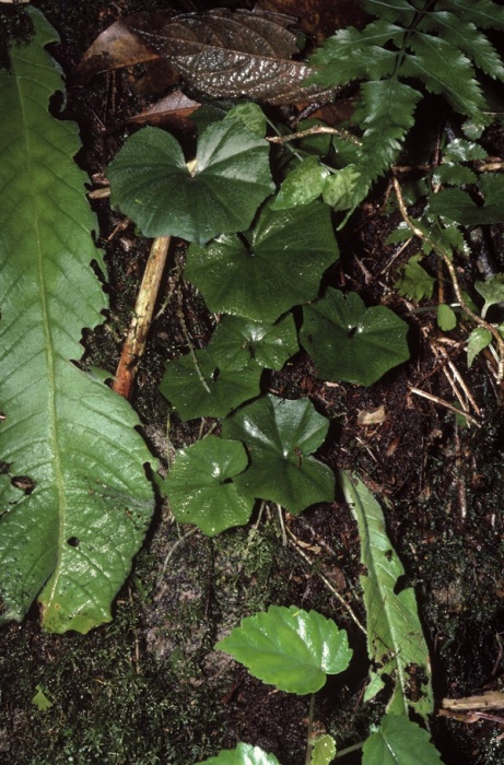 Found in Tanzania, Malawi, Zambia, Zimbabwe and Mozambique in forests, eucalyptus plantations and in secondary grasslands at elevations of 1400 to 2200 meters as a mini-miniature to miniature sized, cool to cold growing terrestrial with a spherical to ellipsoid, tomentose tuber giving rise to a solitary, arising after the inflorescence has withered, horizontal but not prostrate, cordate, obscurely 7 angled, sparsely short white haired, dark green pale beneath to rarely dark purple leaf that blooms in the later spring on an erect, terete, to 5.2" [13 cm] long, single flowered inflorescence with 1 to 2, acute sheaths and a lanceolate, acute floral bract. .