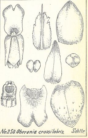 Oberonia crassilabris Schltr. 1911 SUBGENUS Menophyllum SECTION Scytoxiphium Schlechter Type Drawing by © Schlechter and The Swiss Orchid Foundation at the Jany Renz Herbaria Website