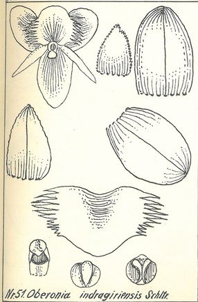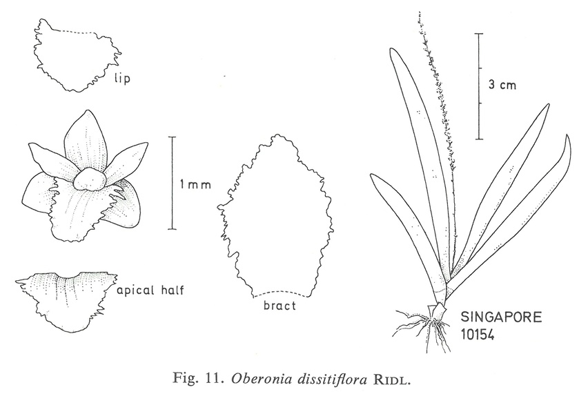 Drawing of Oberonia indragiriensis Drawing by © Seidenfaden/Schlechter and The Swiss Orchid Foundation at the Jany Renz Herbaria Website