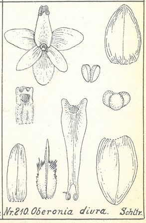 Oberonia diura Schltr. 1905 SUBGENUS Menophyllum SECTION Diurum Schlechter Type Drawing by © Schlechter and The Swiss Orchid Foundation at the Jany Renz Herbaria Website