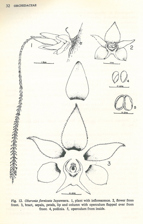 Oberonia fornicata Jayaw. 1963 Drawing by © M.D.Dassanayake & F.R.Fosberg and The Swiss Orchid Foundation at the Jany Renz Herbaria Website