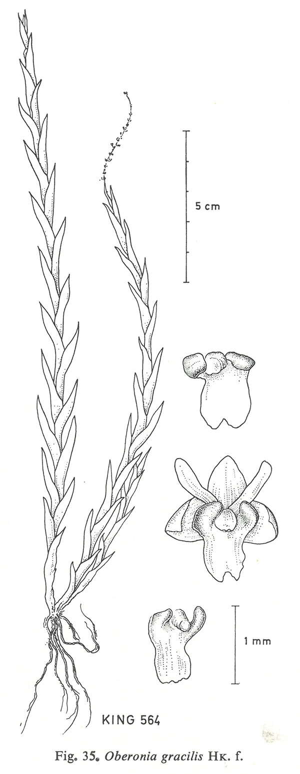 Oberonia gracilis Hook.f. 1888 Drawing by © Seidenfaden and The Swiss Orchid Foundation at the Jany Renz Herbaria Website