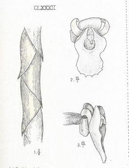 Oberonia imbricata (Blume) Lindl. 1830 SUBGENUS Menophyllum SECTION Labidous Schlechter Drawing by © J J Smith and The Swiss Orchid Foundation at the Jany Renz Herbaria Website