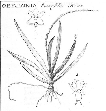 Oberonia linearifolia Ames 1922 Drawing by © Oakes Ames and The Swiss Orchid Foundation at the Jany Renz Herbaria Website