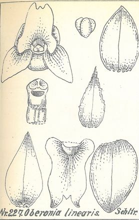 Oberonia linearis Schltr. 1911 SUBGENUS Menophyllum SECTION Otoglossum Schlechter Type Drawing by © Schlechter and The Swiss Orchid Foundation at the Jany Renz Herbaria Website
