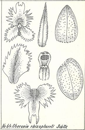Oberonia rhizophoreti Schltr. 1911 Drawing by Schlechter and The Swiss Orchid Foundation at the Jany Renz Herbaria Website