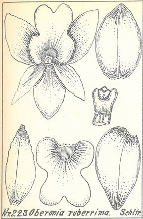 Oberonia ruberrima Schltr. 1911 SUBGENUS Menophyllum SECTION Otoglossum Schlechter Type Drawing by © Schlechter and The Swiss Orchid Foundation at the Jany Renz Herbaria Website
