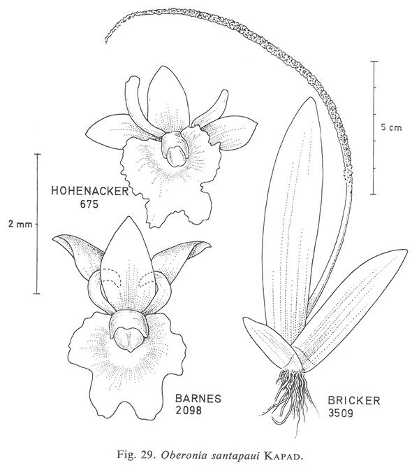 Oberonia santapaui Kapadia 1960 Drawing by Seidenfaden and The Swiss Orchid Foundation at the Jany Renz Herbaria Website