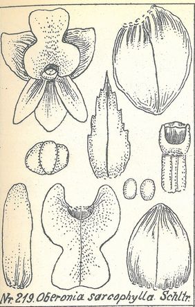 Oberonia sarcophylla Schltr. 1911 SUBGENUS Menophyllum SECTION Otoglossum Schlechter Type Drawing by © Schlechter and The Swiss Orchid Foundation at the Jany Renz Herbaria Website