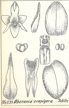 Oberonia scapigera Schltr. 1911 SUBGENUS Menophyllum SECTION Podostachys Schlechter Type Drawing by © Schlechter and The Swiss Orchid Foundation at the Jany Renz Herbaria Website