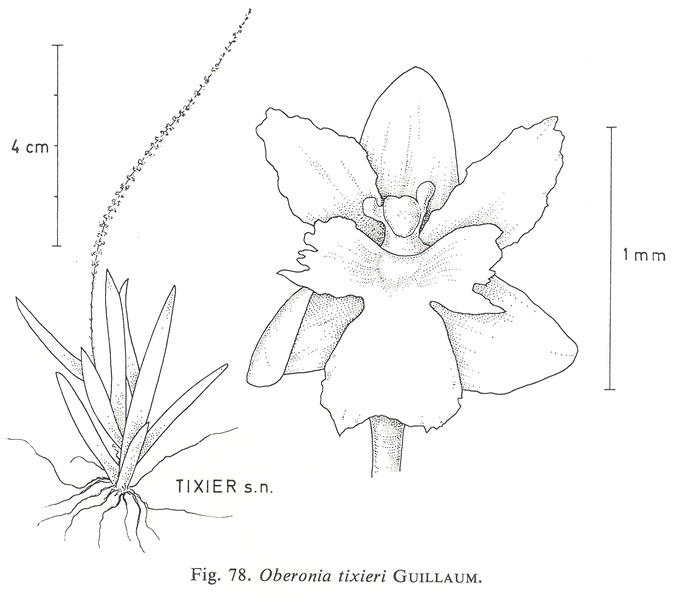 Oberonia tixieri Guillaumin 1961 SUBGENUS Menophyllum Drawing by © Seidenfaden and The Swiss Orchid Foundation at the Jany Renz Herbaria Website