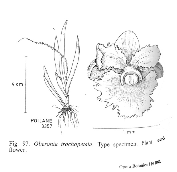 Oberonia trochopetala Gagnep. 1929 SUBGENUS Menophyllum Drawing by © Seidenfaden and The Swiss Orchid Foundation at the Jany Renz Herbaria Website