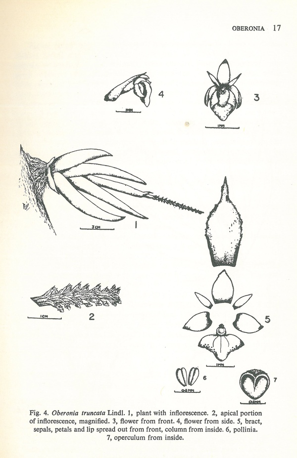 Oberonia truncata Lindl. 1859 Drawing by © M.D.Dassanayake & F.R.Fosberg and The Swiss Orchid Foundation at the Jany Renz Herbaria Website