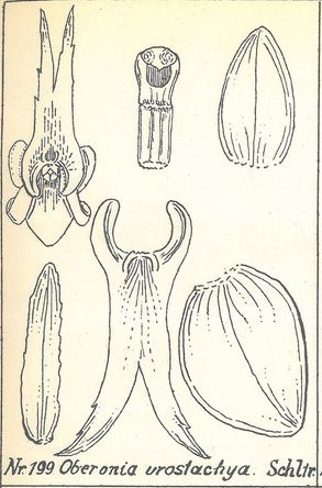 Oberonia urostachya Schltr. 1911 SUBGENUS Menophyllum SECTION Labidous Schlechter Type Drawing by © Schlechter and The Swiss Orchid Foundation at the Jany Renz Herbaria Website