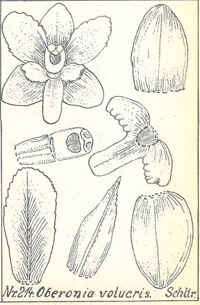 Oberonia volucris Schltr. 1911 SUBGENUS Menophyllum SECTION Otoglossum Schlechter Type Drawing by © Schlechter and The Swiss Orchid Foundation at the Jany Renz Herbaria Website