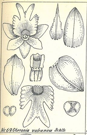 Oberonia vulcanica Schltr. 1911 Drawing by © Schlechter and The Swiss Orchid Foundation at the Jany Renz Herbaria Website