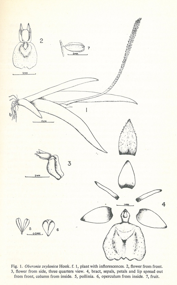 Oberonia zeylanica Hook.f. 1888 Drawing by © M.D.Dassanayake & F.R.Fosberg and The Swiss Orchid Foundation at the Jany Renz Herbaria Website