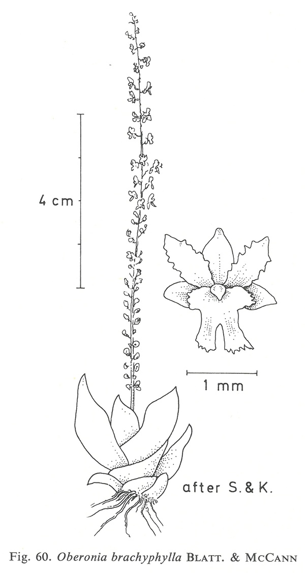 Oberonia brachyphylla Blatt. & McCann 1931 Photos by © Peter O'Byrne/drawing by Schlechter and The Swiss Orchid Foundation at the Jany Renz Herbaria Website