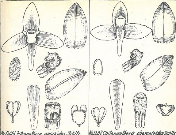 References W3 Tropicos, Kew Monocot list , IPNI ; Orchidaceae of German New Guinea Schlechter 1913 as Chitonanthera aporoides drawing fide; Orchidaceae of German New Guinea Schlechter 1913 as Chitonanthera oberonoides drawing fide
