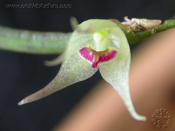 Part of the SECTION Teritifoliae-Scirpoidae O Cucullata Alliance with O cucullata and O octomeriantha and are distinguishd by terete, curved or straight leaves on medium sized plants that are 3.2 to 6" [8 to 15 cm] tall and has a roundish lip