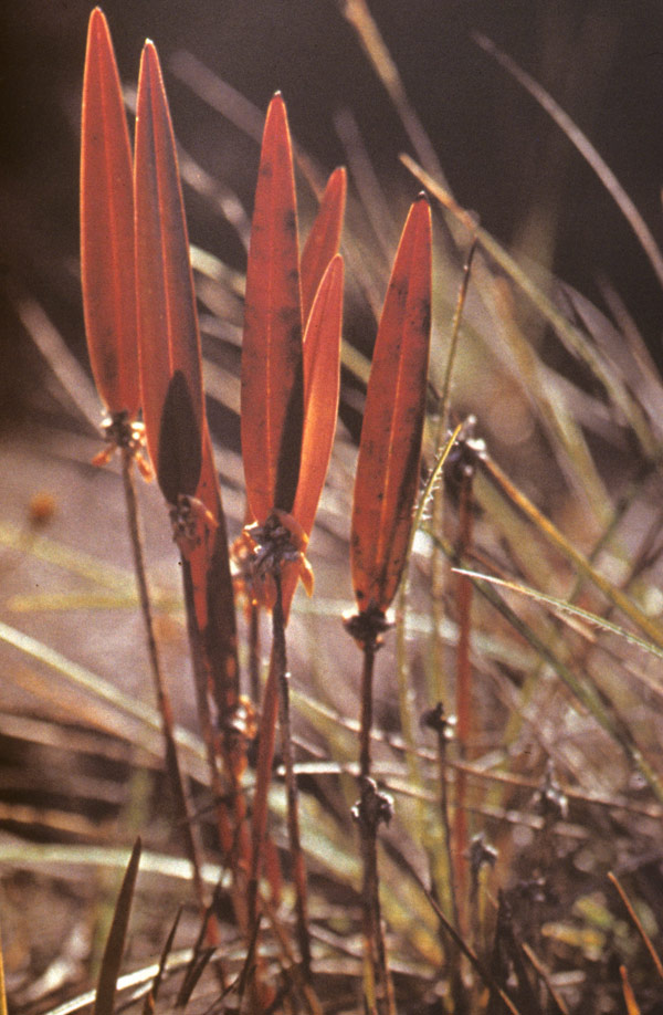 Found in southern Venezuela and Guyana at elevations of 1500 to 2800 meters as a small sized, cool to cold growing epiphyte, lithophyte or terrestrial with slender, erect, terete, longer than the leaf ramicauls enveloped by 2 to 3 tubular sheaths and carrying a single, apical, erect, thickly coriaceous to semiterete, narrowly elliptical to fusiform, acute, narrowing below into the base leaf that blooms at most any time of the year on at the apex of the ramicaul, single successively many, '08" [2mm] long, single flowered inflorescence arising through shredded sheaths.