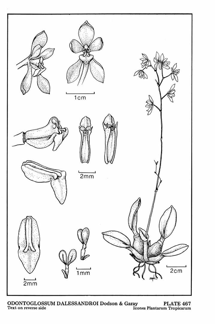 References W3 Tropicos, Kew Monocot list , IPNI ; Das Pflanzenreich Odontoglossum/Oncidium Kranzlin 1922 drawing good; Icones Planetarum Tropicarum plate 467 Dodson 1982 as Odontoglossum dalessandroi drawing fide; Orchids Travel By Air A Pictoral Safari Mulder, Mulder-Roelfsema and Schuiteman 1990 as Odontoglossum dalessandroiphoto fide; Rudolf Schlechter Die Orchideen Band 1C lieferung 33 - 36 2057 - 2308 Brieger 1997 as Trigonochilum dallesandroi photo fide; Lindleyana Vol 16 No 2 2001; The Pictoral Encyclopedia of Oncidium Zelenko 2002 drawing fide; Native Ecuadorian Orchids Vol 3 Dodson 2002 as Odontoglossum gracils drawing fide; AOS Bulletin Vol 74 No 12 2005 drawing; Orchid Species Culture: Oncidium/Odontoglossum alliance Bakers 2006; Orchid Species of Peru Zelenko Bermudez 2009 photo fide; AOS Bulletin Vol 79 #5 2010 drawing fide; Flora of Ecuador No 87 225[3] Orchidaceae Dodson & Luer 2010 drawing fide; Orchids, A Colombian Treasure Vol 1 Ortiz & Uribe 2014 photo fide