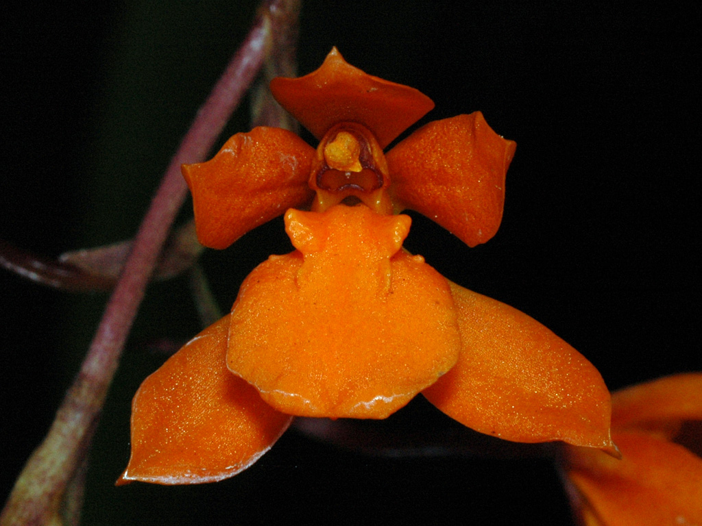 Found in Colombia, Ecuador, Peru, and Bolivia at elevations of 2500 to 3000 meters in very wet montane forests as a medium sized, cold growing epiphyte or terrestrial on steep embankments with ovate, complanate pseudobulbs subtended by several basal leaf-bearing sheaths with 2 apical, oblong-lanceolate, acuminate, conduplicate below into the short petiolate base leaves that blooms in the summer and fall with sterile and fertile flowers on the same elongate, 2' [60 cm] long, arcuate, compound paniculate, 10 to 14, rather shortly branched, each branch 6 to 8 flowered, many flowered inflorescence arising on a mature pseudobulb.