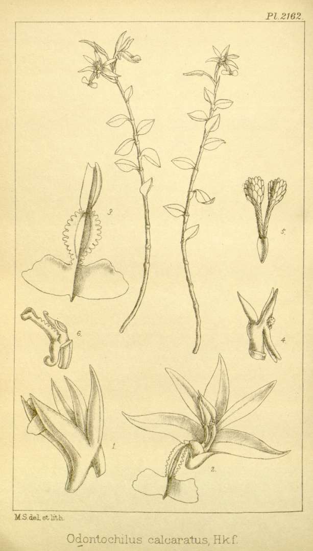 References W3 Tropicos, Kew Monocot list , IPNI ; Icones 22 1893 Hooker as Odontochilus calcaratus drawing fide; Flora of Malaya Vol 1 Holttum 1953 as Anoectochilus calcaratus; The Orchids of Thailand Seidenfaden & Smitnand 1959 as Anoectochilus calcaratus; Botanisk Tidsskrift Bind 66 Hefte 4 Contributions to the Orchid Flora of Thailand III Seidenfaden 1971 as Anoectochilus calcaratus drawing fide; Die Orchideen 3 Auflage Bd 1 Sonderabdruck aus Schlechter Lieferung 5 257 - 320 Brieger, Maatsch and Senghas 1974 as Anoectochilus calcaratus; Dansk Botanisk Arkiv Bind 32 nr 2 Orchids of Thailand VI Neottiideae Seidenfaden 1978 as Anoectochilus calcaratus drawing fide; The Orchids of Penninsular Malysia and Singapore Seidenfaden & Wood 1992 as Anoectochilus calcaratus drawing fide; Orchids of Sumatra Comber 2001 as Pristiglottis calcaratus; Wild Orchids of the Casmeron Highlands REACH 2009 photo fide; Wild Orchids of Penninsular Malaysia Ong, O'Byrne, Yong & Saw 2011 as Pristiglottis uniflora photo hmm; Flora Of Thailand Orchidaceae Vol 12 Part 1 Pedersen, Kurzweil, Suddee & Cribb 2011 drawing fide