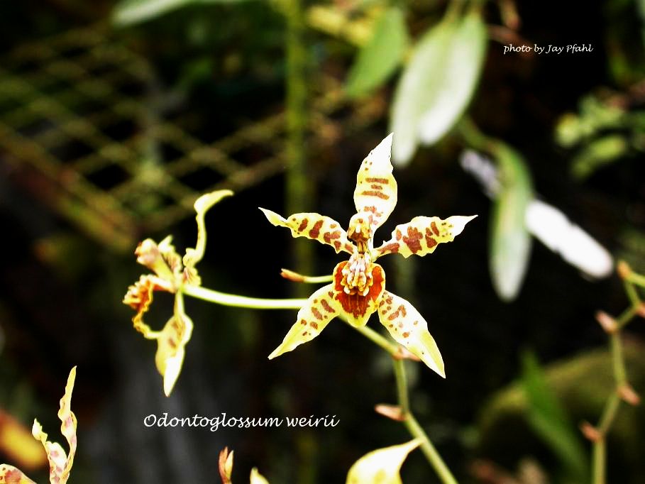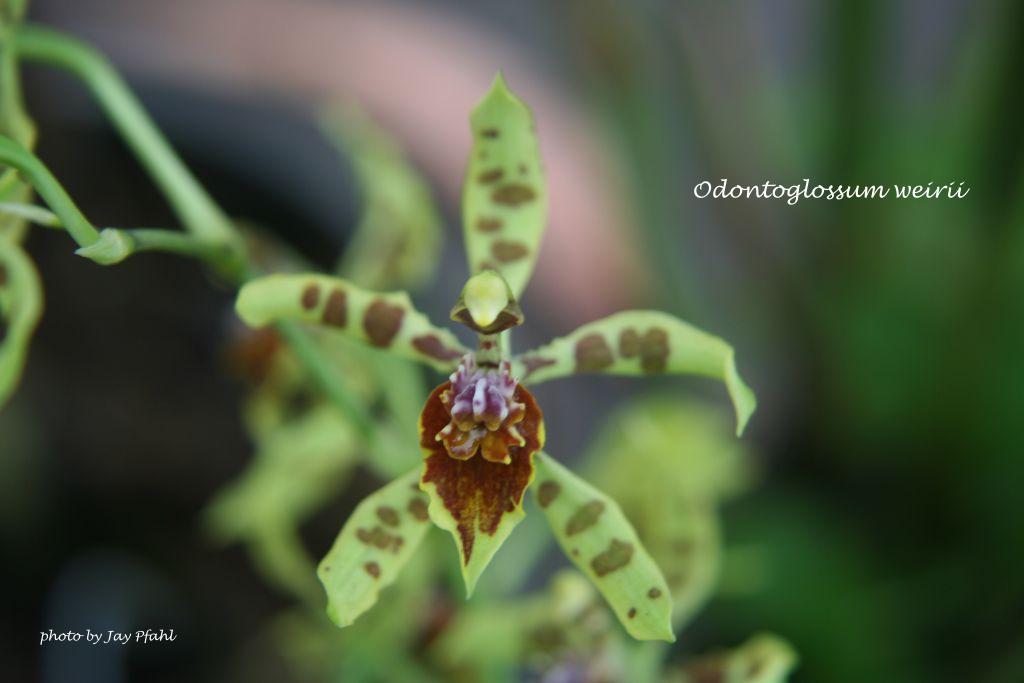 References W3 Tropicos, Kew Monocot list , IPNI ; Icones Planetarum Tropicarum Series II plate 0267 Dodson & Vasquez 1989 drawing ok; The Pictoral Encyclopedia of Oncidium Zelenko 2001; Native Colombian Orchids Vol 3 COS 1991 as Odontoglossum weirii photo fide; The Manual Of Cultivated Orchid Species Bechtel, Cribb & Launert 1992 as Odontoglossum weirii photo fide; Rudolf Schlechter Die Orchideen Band 1C lieferung 33 - 36 2057 - 2308 Brieger 1997 as Odontoglossum weirii; *Lindleyana Vol 16 No 2 2001; The Pictoral Encyclopedia of Oncidium Zelenko 2002 drawing ok; Orquideologia VOl 24 #2 2006 photo fide; Libro Rojo de Plantas De Colombia Vol 6 Primera Parte Saenz 2007 as Odontoglossum weirii photo fide; Orchids, A Colombian Treasure Vol 1 Ortiz & Uribe 2014 drawing/photo fide