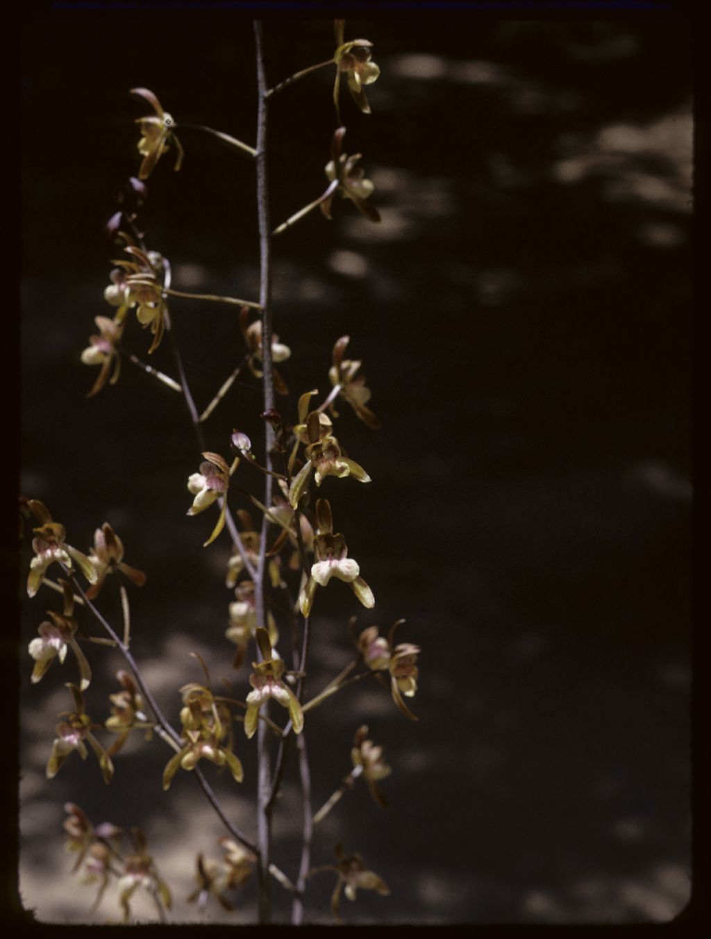 Found in western Madagascar in scrubland and forests undregrowth at elevations up to 80 to 100 meters as a large sized, warm growing terrestrial with small conical pseudobulbs carrying 2 to 4, erect, fleshy, arise after blooming, linear, mottled leaves that blooms in the early summer on a branching, erect, to 56" [140 cm] long, many flowered inflorescence