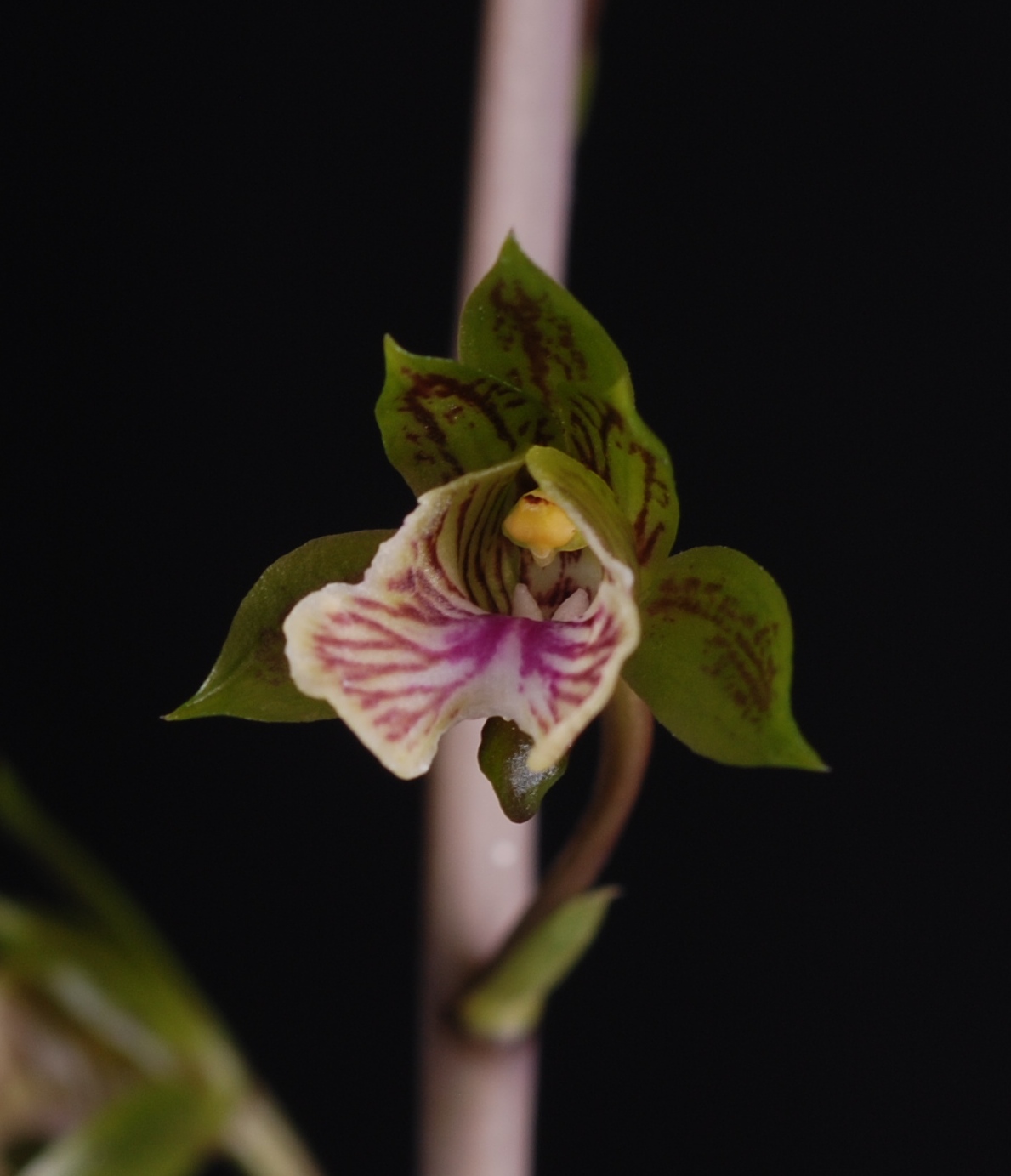 Found in southeastern Madagascar in xerophytic forests at elevations of 400 to 600 meters as a medium sized, hot to warm growing terresttrial with small, conical,heteroblastic pseudobullbsleaves that are not developed at blooming occuring in the late spring and early summer on an erect, thin, peduncle shorter to much longer than the rachis, provided with 3 to 4, basal, scarious, grey, loose sheaths, rachis loosely 10 to 20 flowered inflorescence with narrow, acute, single veined, as long as to about 1/3 the length of the pedicel floral bracts.