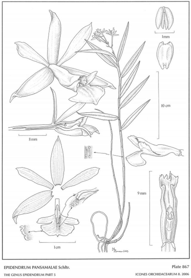 The Genus Epidendrum Ames 1936 as Epidendrum pansamalae; Ceiba Vol 5 No 1 L O Williams 1956 as E dunnii; Ceiba Vol 5 No 1 L O Williams 1956; Die Orchideen 3 Auflage Bd 1 Sonderabdruck aus Schlechter Lieferung 9 513 - 576 Brieger, Maatsch and Senghas 1977 as Oerstedella pansamalae; Icones Planetarum Tropicarum Plate 893 Dodson, Hamer 1983 as Oerstedella pansamalae drawing fide; Manual de Plantas de Costa Rica Vol 3 Hammel, Grayum, Herrera and Zamora 2003 as Oerstedella pansamalae; Orchids of Mexico Hagsater, Soto, Salazar, Jimenez, Lopez and Dressler 2005;
