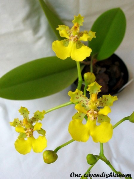 References W3 Tropicos, Kew Monocot list , IPNI ; The Orchids of Mexico and Guatemala Bateman 1843 as Oncidium cavendishianum drawing fide; Xenia Orchidaceae Rchb.f 1854 as Oncidium pachyphyllum drawing fide; Die Orchideen Schlechter 1915; Atlas des Orchidees Cultivees Constantin 1920 as Oncidium cavendishianum drawing good; Das Pflanzanreich Regni Vegetabilis Conspectus Odontoglossum/Oncidium Kranzlin 1922 as Oncidium cavendishianum; AOS Bulletin Vol 30 No 9 1961 as Oncidium cavendishianum; Encyclopedia of Cultivated Orchids Hawkes 1965 as Oncidium cavendishianum; AOS Bulletin Vol 37 No 9 1968 as Oncidium cavendishianum photo fide; AOS Bulletin Vol 49 No 7 1980 as Oncidium cavendishianumdrawing fide; Las Orquedias de El Salvador Vol 3 Hamer 1981 as Oncidium cavendishianum drawing/photo fide; Flora Novo-Galaciana Vol 16 McVaugh 1985 as Oncidium cavendishianum; An Introdution to the Orchids of Mexico Wiard 1987 as Oncdium cavendishianum photo fide; AOS Bulletin Vol 60 No 3 1991 as O cavendishianum drawing fide; ; The Manual Of Cultivated Orchid Species Bechtel, Cribb & Launert 1992 as Oncidium cavendishianum photo fide; *Schlechteriana Vol 4 No 1/2 1993; Rudolf Schlechter Die Orchideen Band 1C lieferung 33 - 36 2057 - 2308 Brieger 1997; Guatemala Y Sus Orquideas Behar & Tinschert 1998 photo fide; Lindleyana Vol 16 No 2 2001 as Trichocentrum cavendishianum; Orquideas del Estado de Morelos ORQUÍDEA (MÉX.) VOLUMEN 16 NÚMERO ÚNICO enero 2002 drawing/photo fide; Orchid Species Culture: Oncidium, Bakers 2006; The Pictoral Encyclopedia of Oncidium Zelenko 2002 as Trichocentrum cavendishianum; AOS Bulletin Vol 75 No 9 2006 photo fide; Orchid Digest Vol 73 #2 2009 photo fide; Guia de Orquideas de Chiapas Carlos Rommel Beutelspacher Baigts 2013 as Trichocentrum cavendishianum photo fide; Harvard Papers in Botany Vol 21 #2 Cetzal-Ix Carnevalli and Romero-Gonzalez 2016 Synopsis of the Trichocentrum Clade photo fide; AOS Bulletin Vol 86 #3 2017 as Trichocentrum cavendishianum photo fide; AOS Bulletin Vol 86 # 11 2017 as Trichocentrum cavendishianum photo fide; Orchid Genera and Species in Guatemala Archila, Szlachchetko, Chiron, Lipinska, Mystkowska and Bertolini 2018