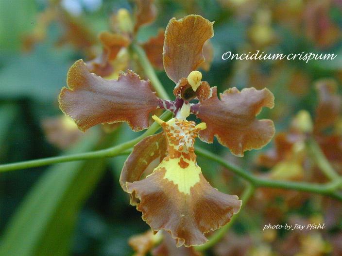 Oncidium crispum Lodd. 1832 SECTION Crispa Photo by © Ron Parsons plant grown by Marni Turkel Photo by © Jay Pfahl Photo by © Weyman Bussey Common Name The Curled Oncidium [refers to the sepals and petals being wavy]