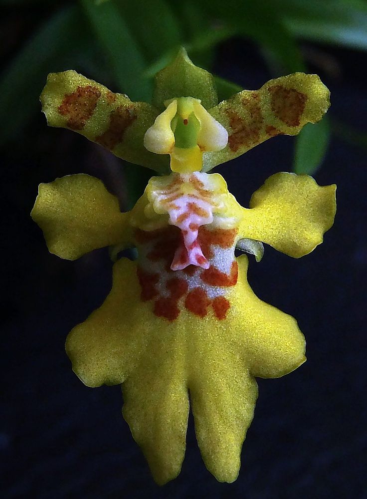 Found from Mexico, Guatemala, Belize, El Salvador, Honduras, Nicaragua, Costa Rica and Panama, references have been made for Colombia to Peru but nothing solid, in mountain rain forest and coffee plantations from 650 to 1850 meters in elevation as a miniature sized, cool to hot growing epiphyte with an elliptic-ovoid pseudobulb subtended by several foliaceous bracts and has an aborted apical leaf and several linear-lanceolate leaves arising from the bracts and blooms with one to few flowers on a axillary, erect or arching, to 3" [7 cm] long, 1 to 4 successive, opening flowers per racemose inflorescence arising on a mature pseudobulb that can have 3 to 4 to a psuedobulb and blooms in the summer and fall but can bloom a second time later if kept happy.