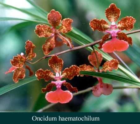 References W3 Tropicos, Kew Monocot list , IPNI ; Symbolae Antillanae Vol VI Orchidaceae Urban 1909; Die Orchideen Schlechter 1915 as Oncidium haematochilum; Atlas des Orchidees Cultivees Constantin 1920 as Oncidium x haematochilumdrawing good; Das Pflanzanreich Regni Vegetabilis Conspectus Odontoglossum/Oncidium Kranzlin 1922 as Oncidium haematochilum; Native Orchids of Trinidad Schultes 1960; Encyclopedia of Cultivated Orchids Hawkes 1965 as Oncidium haematochilum; *Schlechteriana Vol 4 No 1/2 1993 drawing fide; Rudolf Schlechter Die Orchideen Band 1C lieferung 33 - 36 2057 - 2308 Brieger 1997 ; Lindleyana Vol 16 No 2 2001 as Trichocentrum haematochilum; Orquideologia Vol. 23 No 2 2004 as Oncidium haematochilum; Orchid Species Culture: Oncidium, Bakers 2006; AOS Bulletin Vol 77 No 3 2008 photo; Orchid Digest Vol 73 #2 2009 photo fide; Lankesteriana 9(3) 521-525 Narvaez, Cetzal Ix and Carnevali 2010 photo/drawing fide; Harvard Papers in Botany Vol 21 #2 Cetzal-Ix Carnevalli and Romero-Gonzalez 2016 Synopsis of the Trichocentrum CladeAOS Bulletin Vol 86 # 11 2017 as Trichocentrum x haematochilum photo fide;
